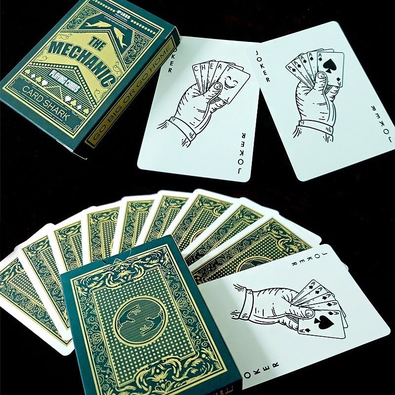 III édition de The Mechanic Deck par JL. Édition très limitée: seulement 300 jeux. Traitement de revêtement brillant élastique. 52 cartes, 2 jokers et 1 carte spéciale. Format poker